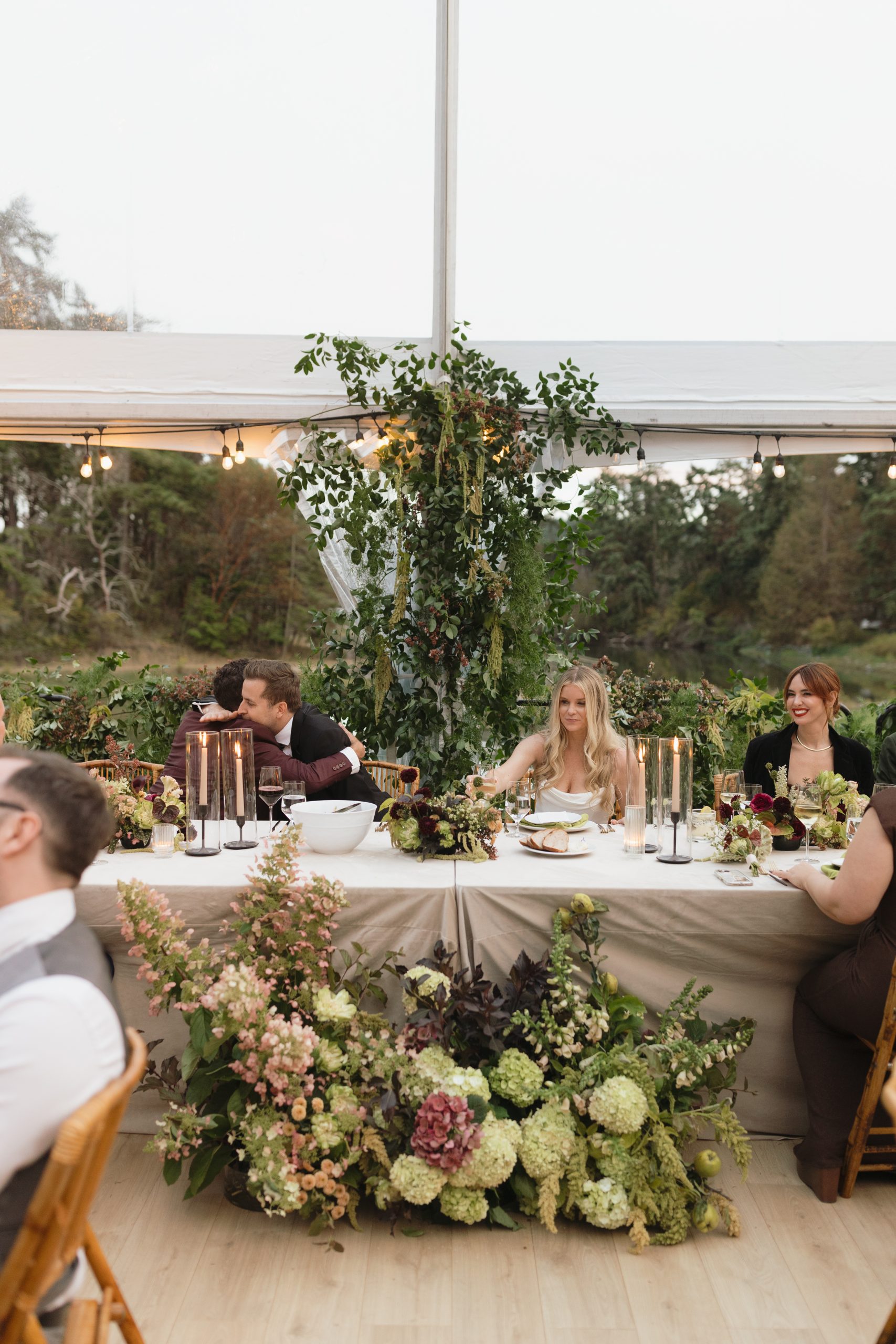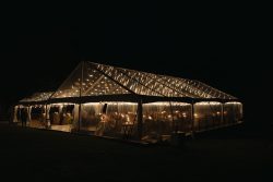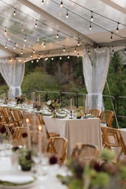 Lighting & Ambiance: Our Black Cafe LED Lights were meticulously strung up and down the canvas and around the perimeter, casting a romantic, amber glow over the entire reception.