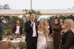 Love was truly in the air, and under the stars, at Stef and Will’s breathtaking September wedding. Set against a lush, wooded backdrop, the celebration was a masterclass in modern elegance. The atmosphere struck a perfect balance between natural beauty and sophisticated design, creating an unforgettable experience for every guest. From the crisp snap of the champagne flutes to the warm glow of the overhead lighting, every detail was curated to celebrate the happy couple in style.