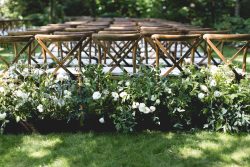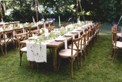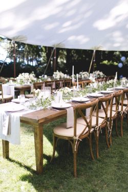 140 Vineyard Oakwood X-Back Chairs: These chairs are a favorite for a reason; their oak finish and iconic cross-back design added a touch of vintage charm to both the ceremony lawn and the dining tables.