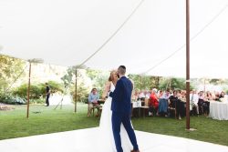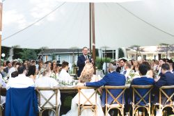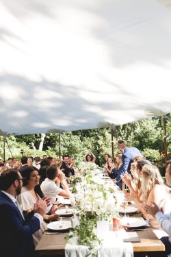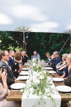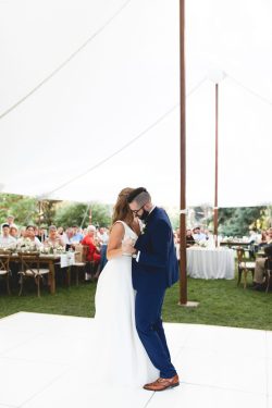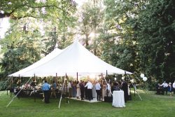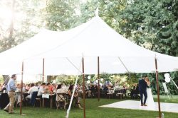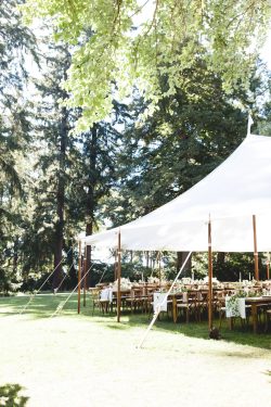 1 Tidewater Sailcloth Canopy (44’x63′): Our signature sailcloth tent acted as the centerpiece of the reception. Its translucent fabric allowed the afternoon sun to create a warm, natural glow, while its elegant peaks mirrored the surrounding treeline.